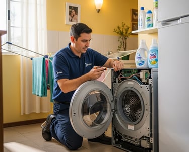 Revisión y Diagnóstico: Nuestros técnicos inspeccionarán minuciosamente su lavadora, verificando el estado de todos sus componentes, como el motor, las bombas de drenaje y los circuitos electrónicos.